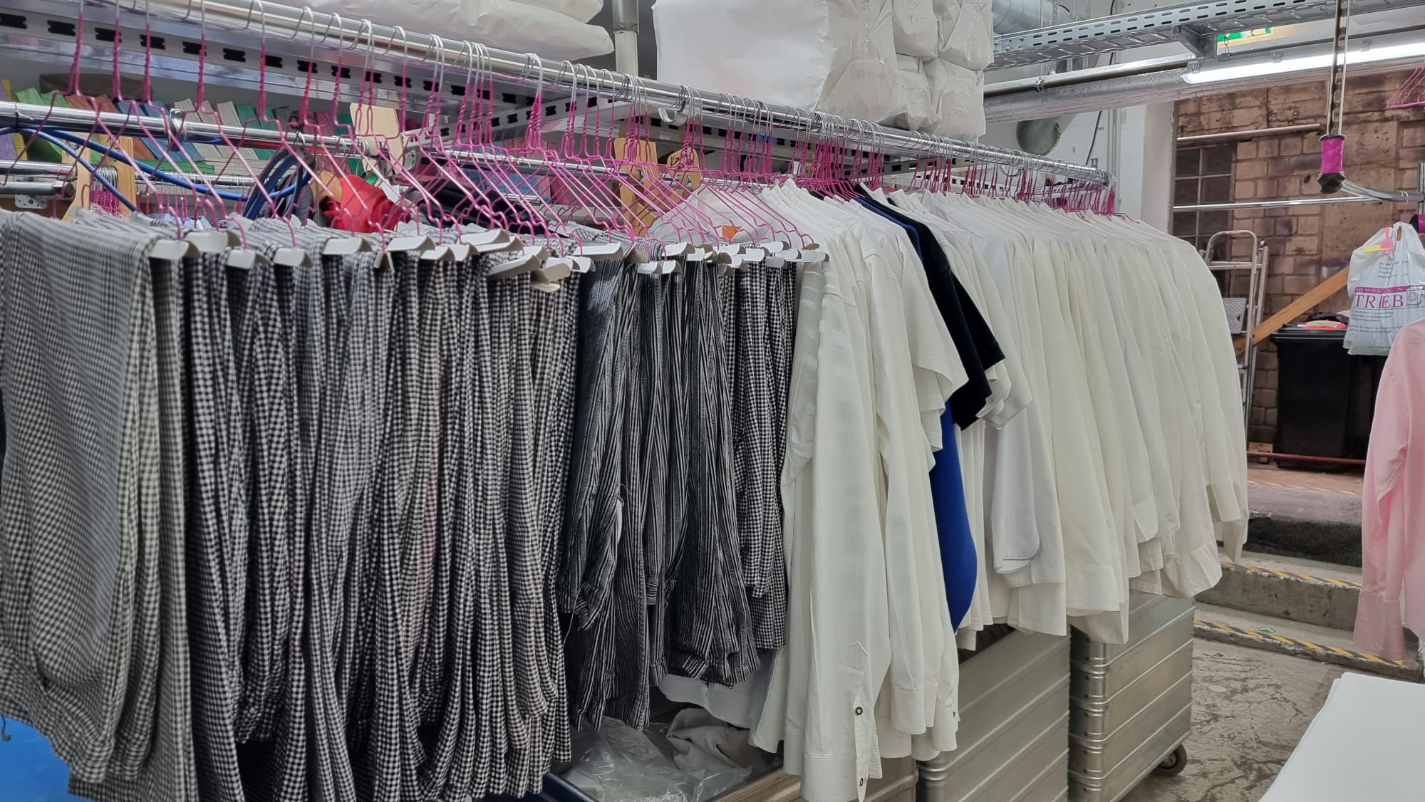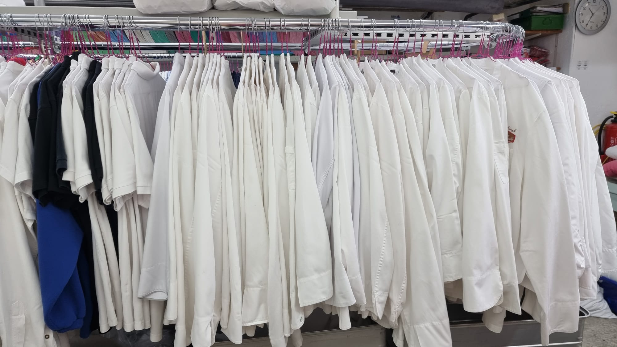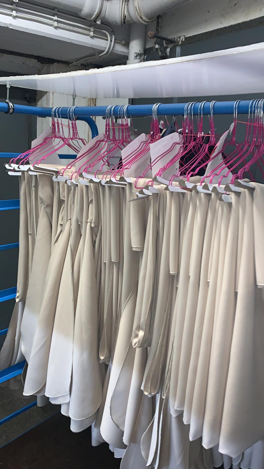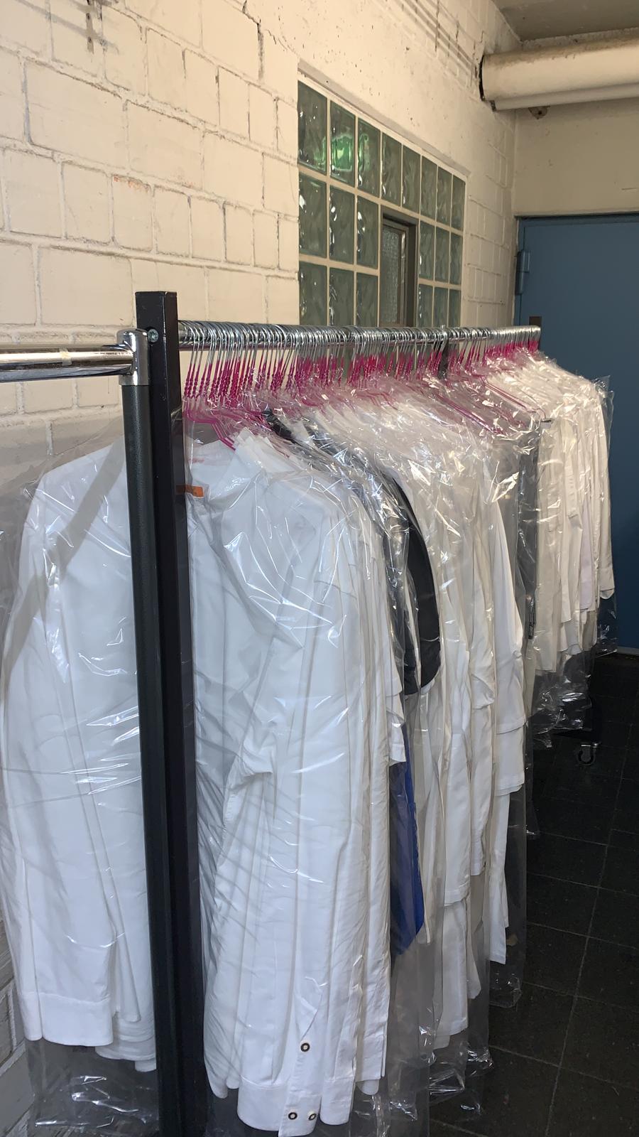 Nach der Reinigung dauert es etwas, bis die Textilien ausgeliefert oder abgeholt werden da die Teile zu verschiedenen Zeiten fertig sind. Sie werden bei uns zwischengelagert in unserem Wäschelager. Dieses musste jetzt um den kompletten Flur, Lager, Backoffice – erweitert werden.