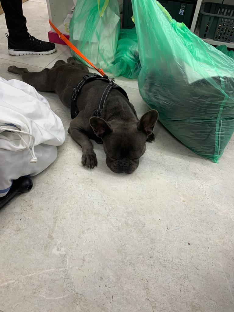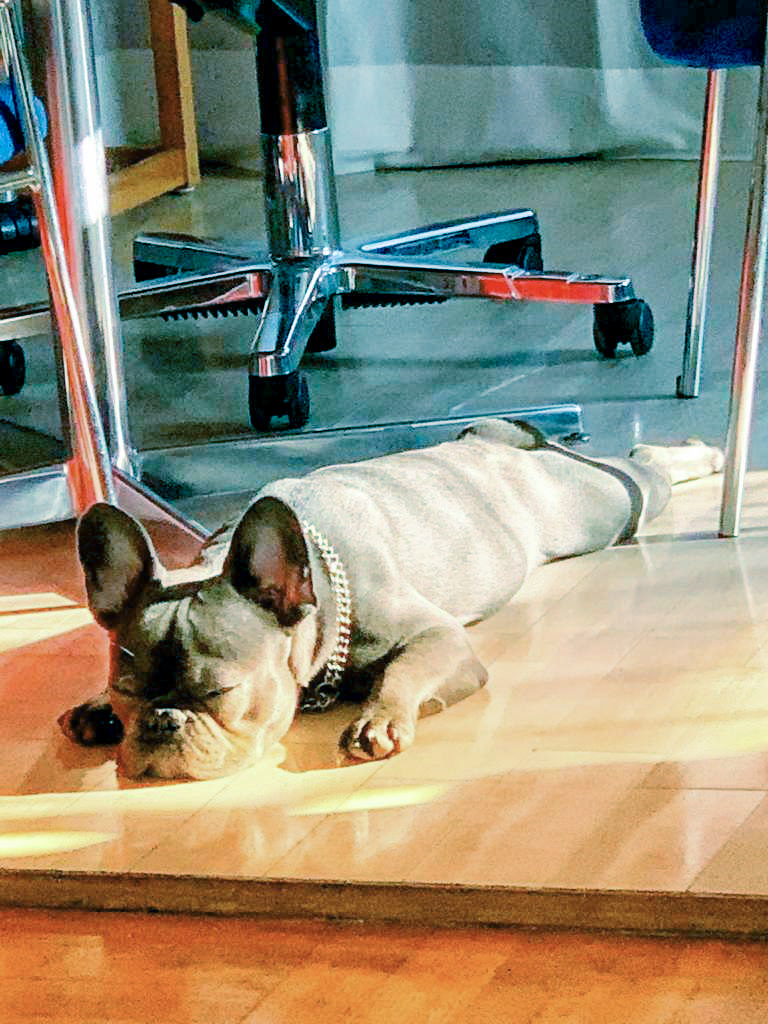 Der Kollege hat die Angewohnheit, mitten im Weg ein Nickerchen zu machen. So nervig es für unsere Mitarbeiter ist, taktisch ist dies gut durchdacht. Durch die Positionierung des eigenen Körpers im Weg ist eine zusätzliche Zutrittskontrolle zu unseren Räumen gewährleistet. Wir sind immer wieder über die weitreichenden taktischen Fähigkeiten unseres Kollegen erstaunt. Selbst beim Nickerchen in der Pause sorgt Tyson für ein Höchstmaß an Sicherheit.