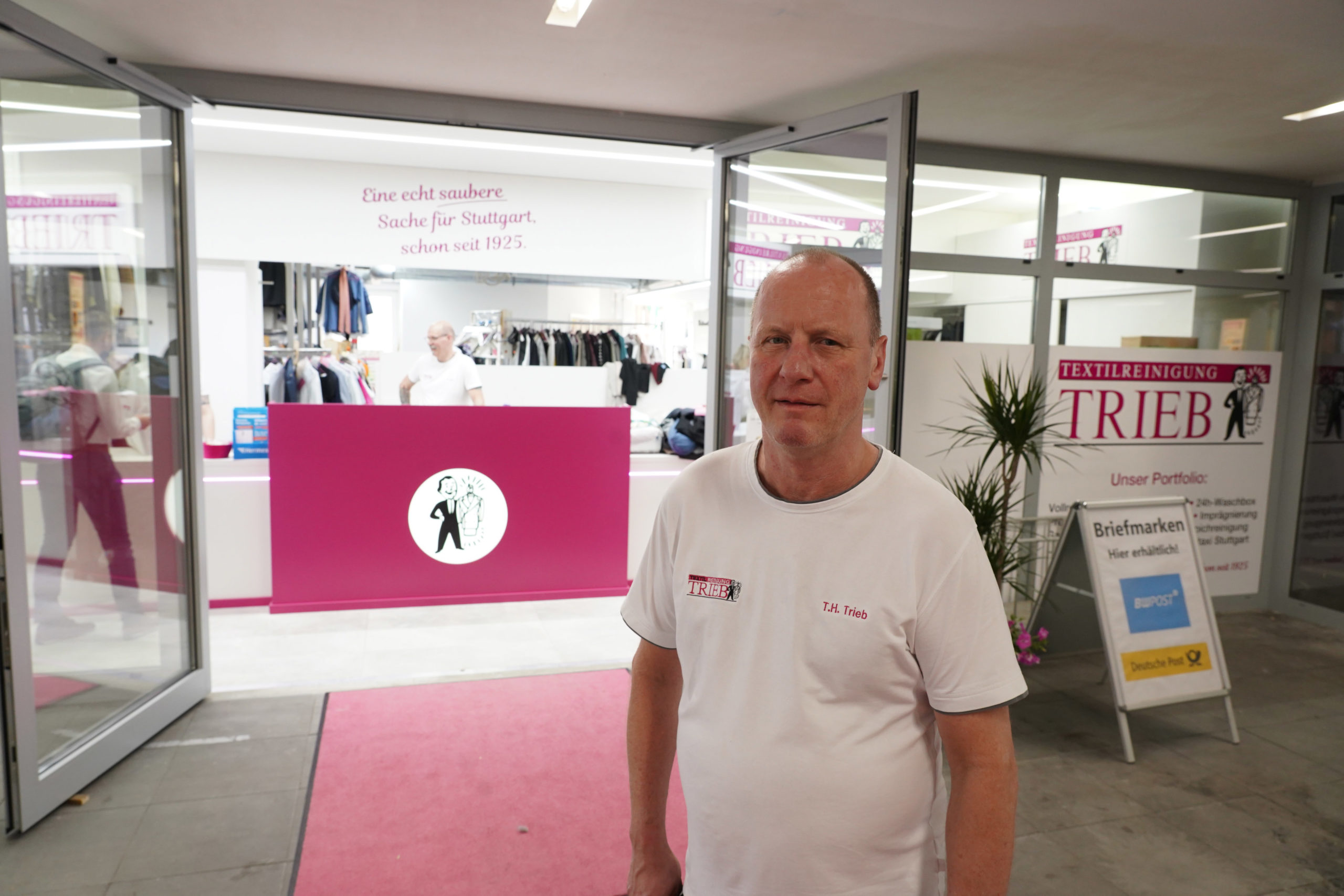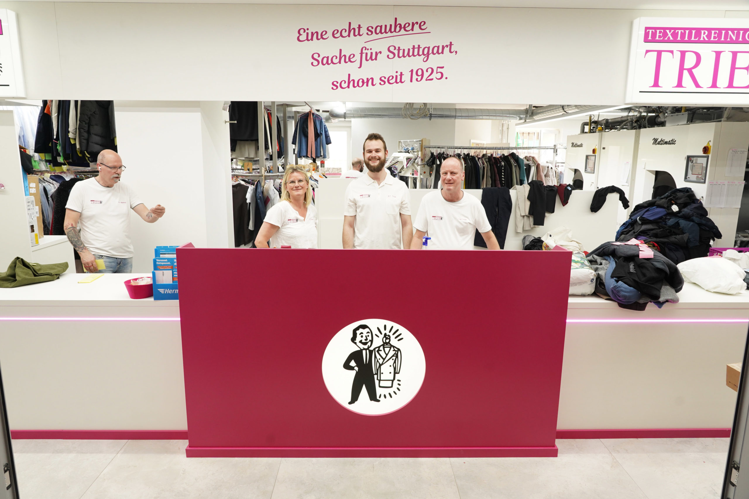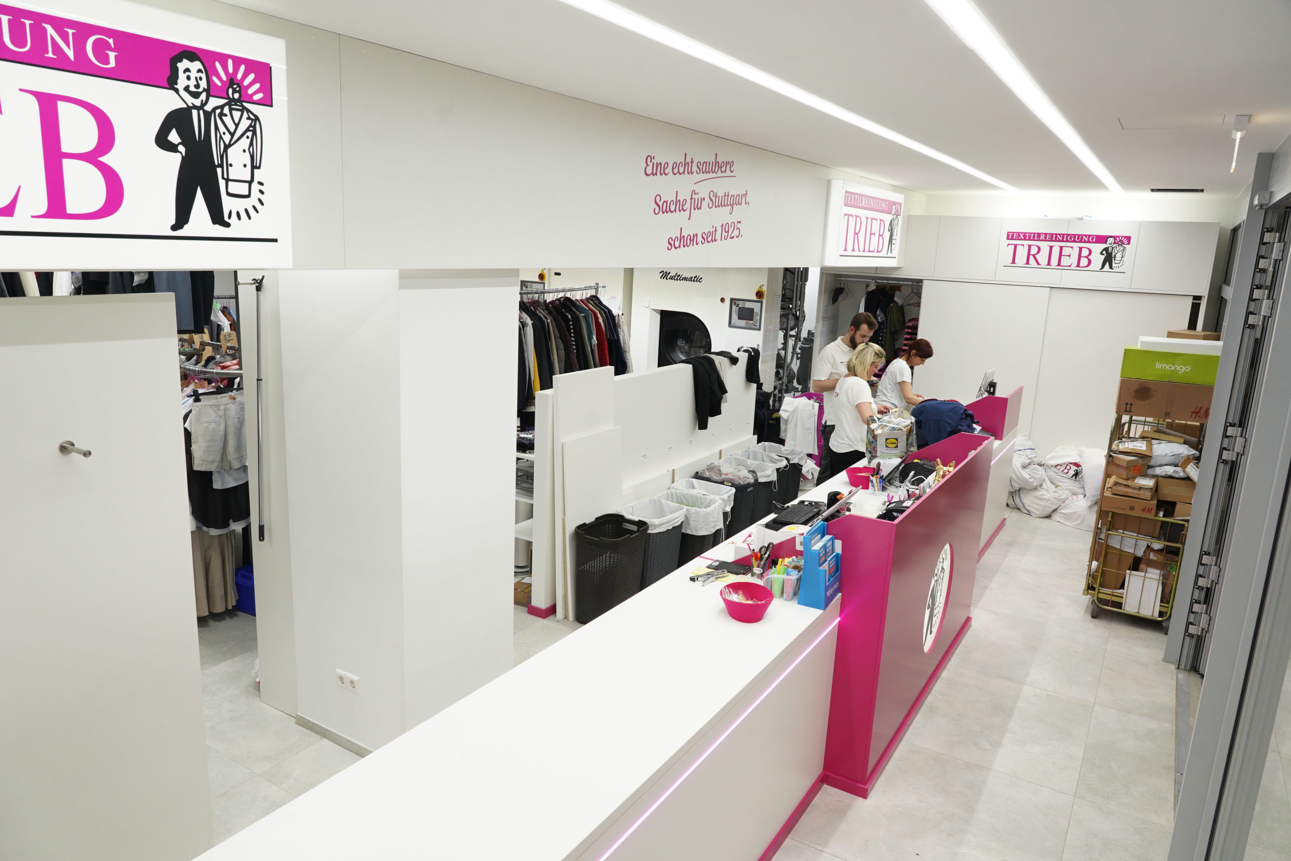 Stuttgart Textilreinigung Trieb ist heute die Wieder Eroeffnung nach dem schlimmen Brand 26.27.02.2021 ist das Stammgeschaeft komplett ausgebrannt worden. Und ueber ein Jahr wurde hier komplett Renoviert worden. Heute ist die Freude gross, Wir sind wieder in der Passage des Hintenburgbau wieder da.
